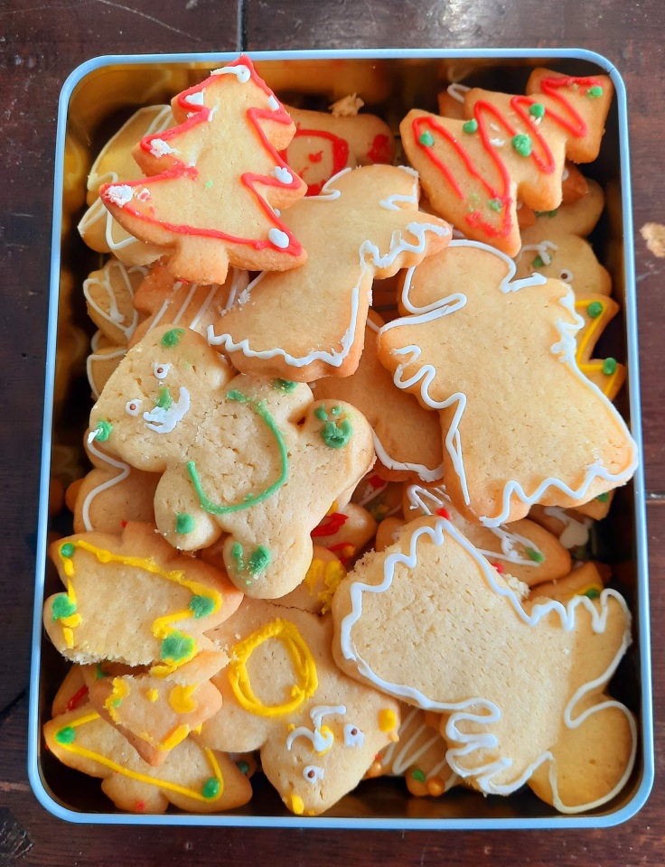 Bake/buy Christmas cookies or cakes and give them to a neighbour, friend or someone else who can use them.