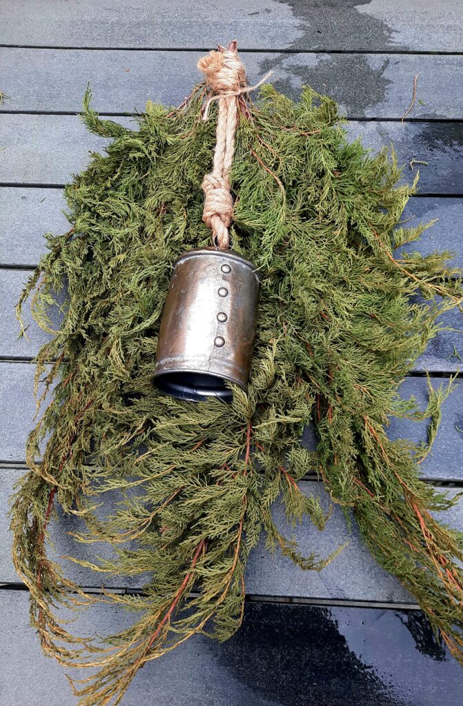 - Om ervoor te zorgen dat de echte kerstakken lang groen blijven heb ik mijn takken een nachtje in een emmer met een laagje water gezet